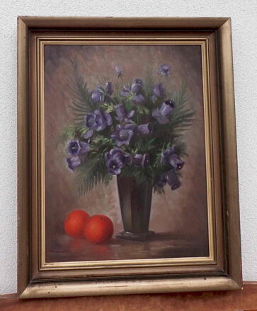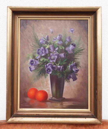 Obraz květin - Kytice zvonků. Signován vpravo dole - viz foto. Autorem je vyhledávaný akademický malíř Charles Mayer. Tento malíř dokáže na svých obrazech úžasně zachytit krásu okamžiku. Zezadu obraru, je autorské razítko - viz foto.