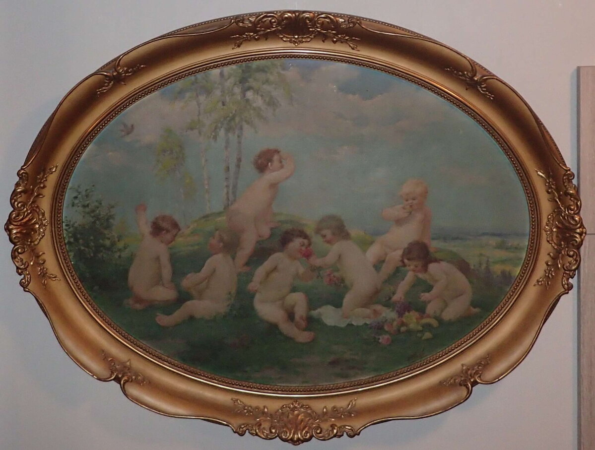 Rozměry včetně rámu úctyhodných cca 116 cm x 90 cm, rám je krásně zdobený, mohutný, místy má otluky. Olej na malířské lepence. Celkový stav - viz foto.