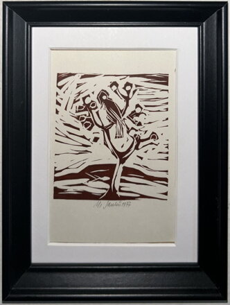 Rozměry včetně rámu cca 21 cm x 16 cm. Obraz je adjustován do nového rámu. Barevný linoryt na papíře. Celkový stav - viz foto.
