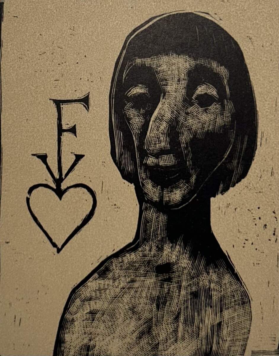 Obraz - Francoise Villon. Autorem je kvalitní malíř a grafik Vladimír Komárek. Signován tužkou uprostřed dole - viz foto.