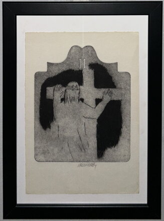 Obraz - Křížová cesta. Autorem je malíř a grafik Vladimír Komárek. Signován tužkou uprostřed dole - viz foto.