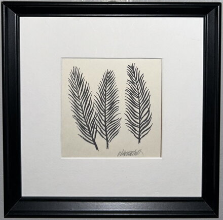 Obraz - Kapradiny. Autorem je kvalitní malíř a grafik Vladimír Komárek. Signován tužkou vpravo dole - viz foto.