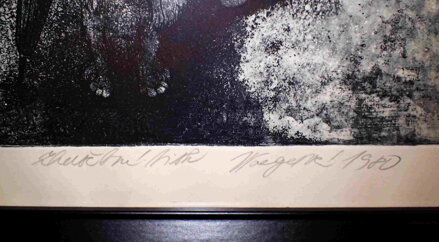 Rozměry včetně rámu cca 52 cm x 42 cm. Zřejmě litografie či suchá jehla na papíře - zkušební tisk. Obraz je adjustován do nového rámu. Celkový stav - viz foto.