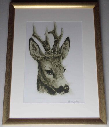 Obraz - Srnec V. Signován vpravo dole - viz foto. Autorem je malíř a grafik Aleša Vaic - syn známého grafika Josefa Vaice. Obrazů s loveckými motivy není na trhu mnoho.