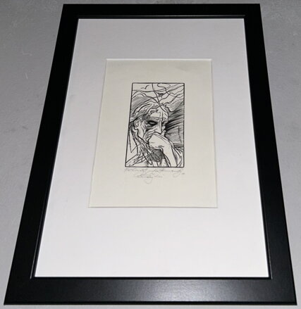 Celkové rozměry včetně rámu 34 cm x 25 cm. Grafika je adjustována do nového rámá. Linyryt na papíře. Obraz je zasklený. Celkový stav - viz foto.