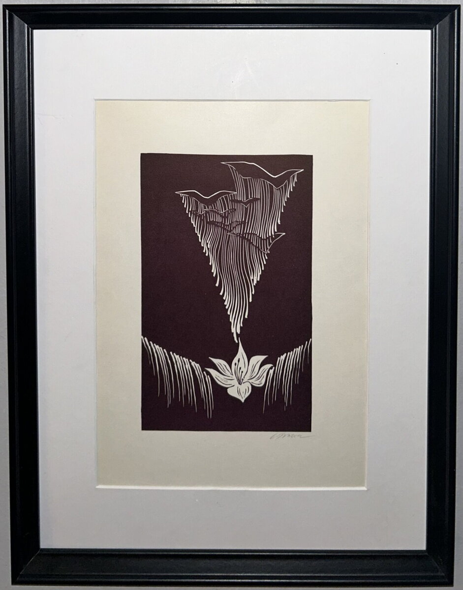 Rozměry včetně rámu cca 43 cm x 33 cm. Grafika je adjustována do nového rámu. Linoryt či dřevoryt na papíře. Celkový stav - viz foto.