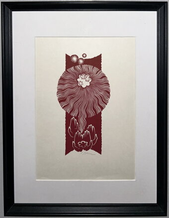 Rozměry včetně rámu cca 43 cm x 33 cm. Grafika je adjustována do nového rámu. Linoryt či dřevoryt na papíře. Celkový stav - viz foto.