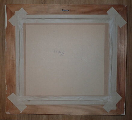 Rozměry včetně rámu cca 46 cm x 42 cm, rám je zdobený, místy má otluky. Olej na kartonu. Obraz je zasklený. Celkový stav - viz foto.