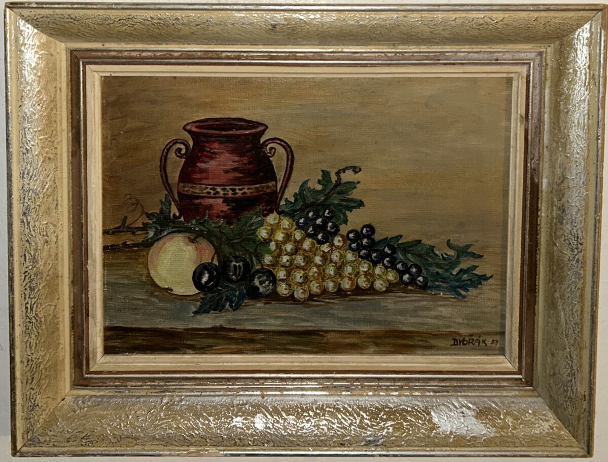Obraz - Zátiší s ovocem a džbánem. Signován a datován vpravo dole - viz foto. Autorem je malíř Dvořák.