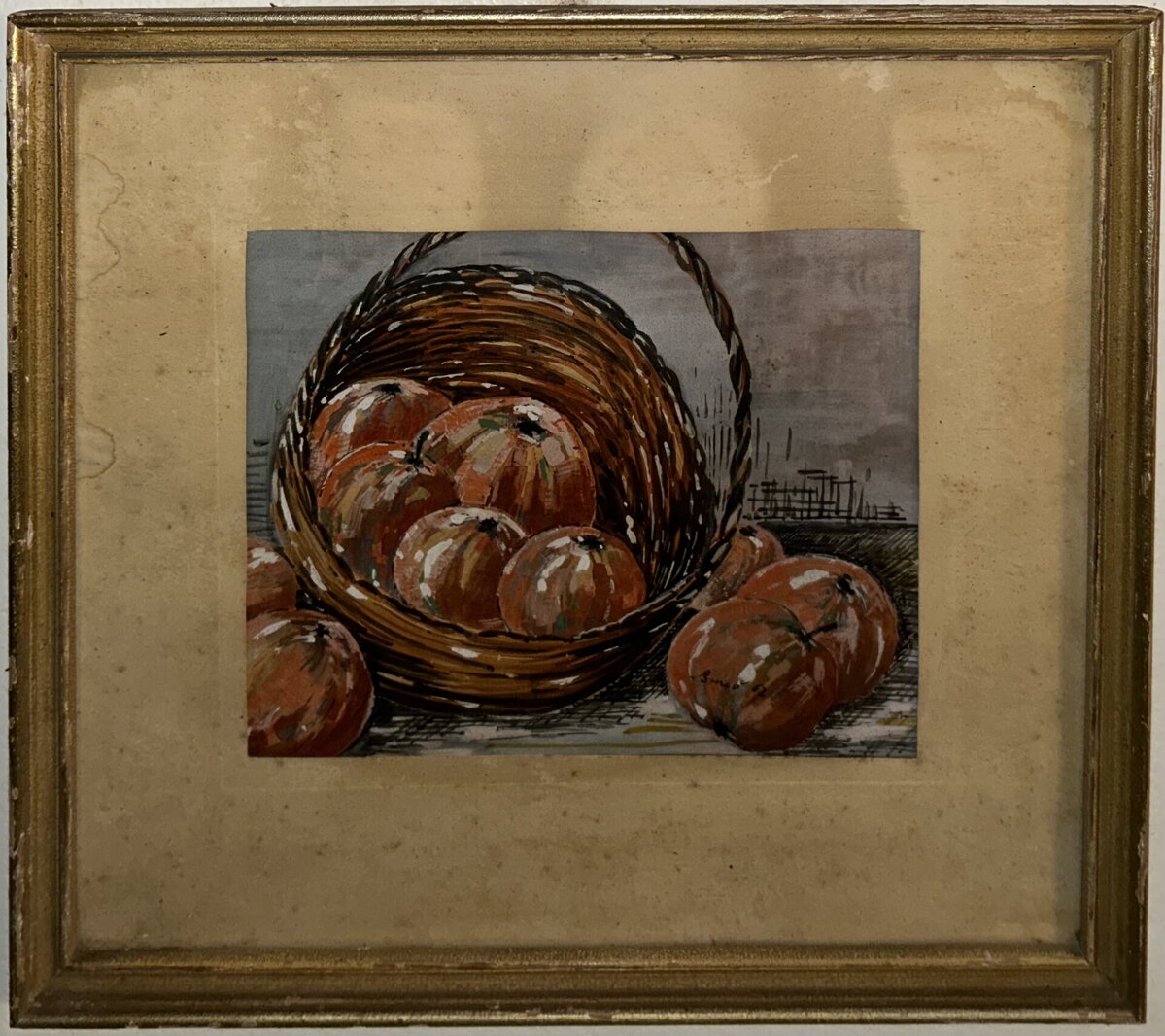Obraz - Zátiší s jablky v košíku. Signován a datován vpravo dole - viz foto. Autorem je malíř Bureš.