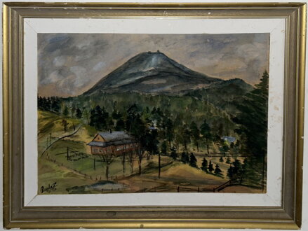 Obraz - Pohled na Sněžku. Signován a datován vlevo dole - viz foto. Autorem je malíř Ravela.