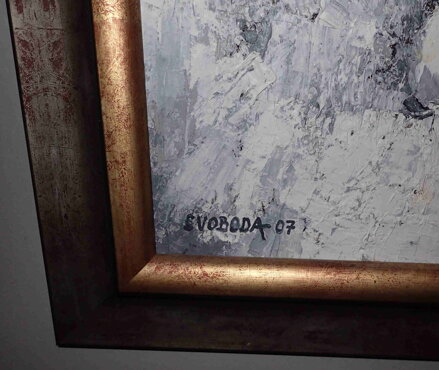 Rozměry včetně rámu cca 73 cm x 63 cm. Rám je mohutný, zdobený. Osobitý styl malby - pastózní olej, je nanášený v několika vrstvách špachtlí na desku. Celkový stav - viz foto. Technologie jeho tvorby vyžaduje delší časový prostor. Pracuje špachtlí, s odstupem času ve více vrstvách, proto jsou všechny jeho obrazy tak plastické a malba pastózní. Je to jeden z autorů, u kterých je styl natolik signifikantní, že na první pohled poznáte jeho malířský rukopis.