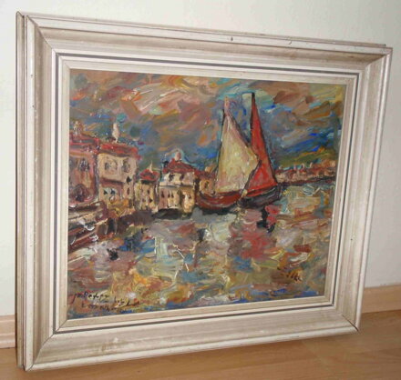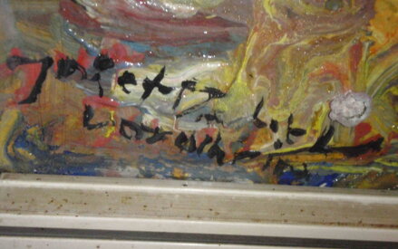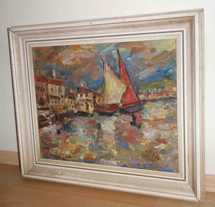 ROZMĚRY RÁMU CCA 53 X 45 CM, RÁM JE PŮVODNÍ, MÍSTY MÁ OTLUKY. SYTÝ OLEJ NA KARTONU. OSOBITÝ STYL, NA OBRAZ JE NANESENO VELKÉ MNOŽSTVÍ BARVY. CELKOVÝ STAV - VIZ FOTO.