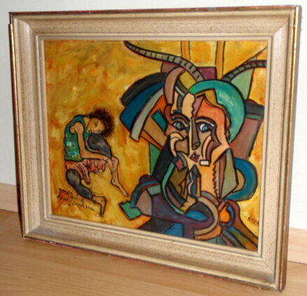 ÚŽASNÝ KUBISTICKY POJATÝ OBRAZ - SCHIELEHO ZAMYŠLENÍ. AUTOREM JE MALÍŘ JOSEF DUBIEL VON LERACH. OBRAZ JE SIGNOVÁN VLEVO DOLE - VIZ. FOTO. ZEZADU OBRAZU JSOU ZÁKLADNÍ ÚDAJE O DÍLE - VYPLNĚNÉ OD AUTORA, INFORMACE O AUTOROVI, NÁZEV DÍLA, TECHNIKA, NĚKOLIK RAZÍTEK ATD. - VIZ FOTO.