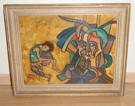 ROZMĚRY RÁMU CCA 40 X 33 CM, RÁM JE PŮVODNÍ, MÍSTY MÁ OTLUKY. SYTÝ OLEJ NA KARTONU. OBRAZ JE ZASKLENÝ. OSOBITÝ STYL, NA OBRAZ JE NANESENO VELKÉ MNOŽSTVÍ BARVY. CELKOVÝ STAV - VIZ FOTO.