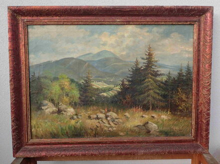 Obraz - Léto v Beskydech. Signován vpravo dole - viz foto. Autorem je malíř a grafik Josef Drha ( J. Deingruber ). Olej galerijní kvality a úctyhodné velikosti navíc na plátně.