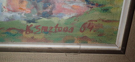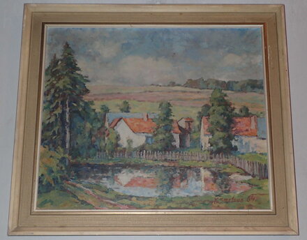 Obraz - Husí rybníček za vsí. Signován a datován vpravo dole - viz foto. Autorem je malíř Karel Smetana.