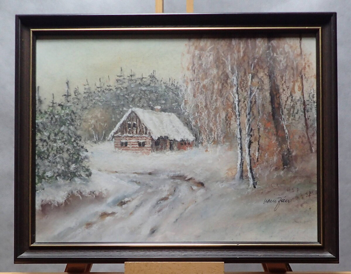 Obraz - Zima v lese. Signován vpravo dole - viz foto. Autorem je malíř Jan Vorlíček. Zezadu obrazu je autorské razítko, kde je uveden autor, název díla a technika - viz foto.