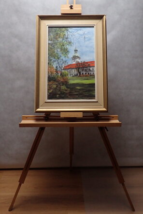 Obraz - Zámek ve Vsetíně. Signován vpravo dole - viz foto. Autorem je malíř Jan Vorlíček. Zezadu obrazu je autorské razítko, kde je uveden autor, název díla a technika - viz foto.