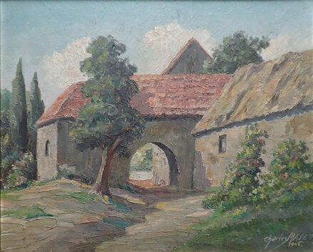Obraz - Vesnický statek. Signován a datován vpravo dole - viz foto. Autorem je vyhledávaný akademický malíř Charles Mayer. Tento malíř dokáže na svých obrazech úžasně zachytit krásu okamžiku.