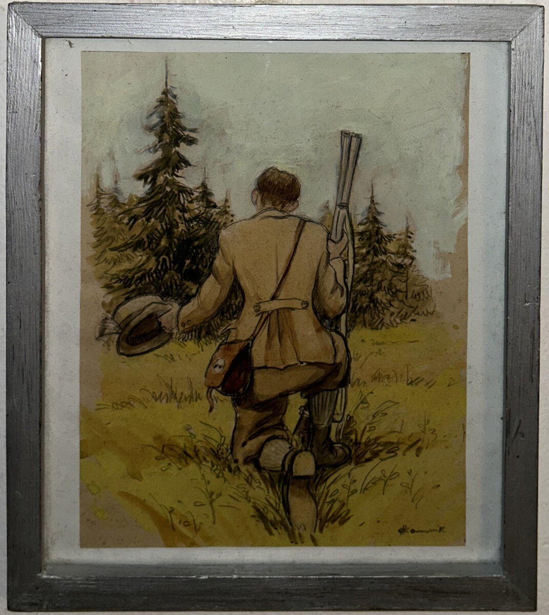 Obraz - Myslivec v lese. Signován vpravo dole - viz foto. Autorem je malíř Antonín Kameník.