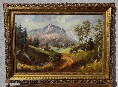 Obraz - Léto pod horami. Autorem je malíř Steiner. Signován vpravo dole - viz foto.