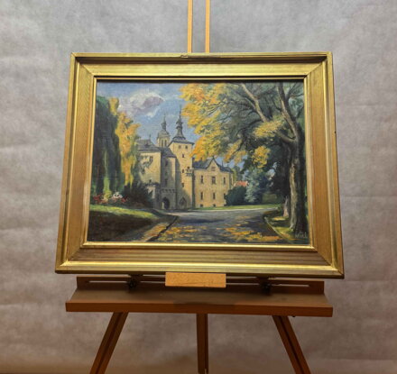 Rozměry včetně rámu cca 64 cm x 53 cm. Rám je zdobený, místy má otluky - viz foto. Olej na plátně. Celkový stav - viz foto.