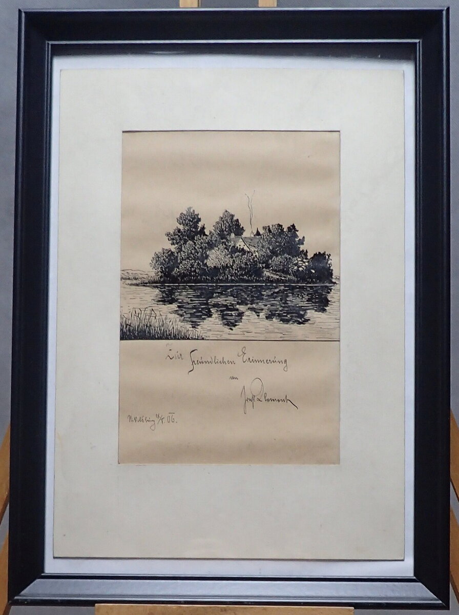 Rozměry včetně rámu cca 32 cm x 23 cm. Kresba tuší na papíře. Obraz je adjustován do nového rámu. Celkový stav - viz foto.