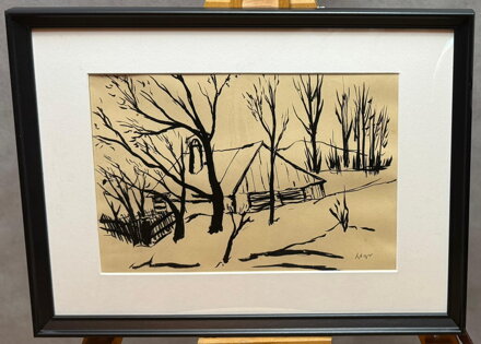 Rozměry včetně rámu cca 42 cm x 32 cm. Kresba tuší na papíře. Obraz je adjustován do nového rámu. Celkový stav - viz foto.