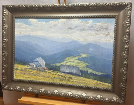 Rozměry včetně rámu úctyhodných cca 93 cm x 68 cm. Rám je mohutný, krásně a bohatě zdobený, místy má otluky. Olej na plátně. Celkový stav - viz foto.