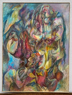 Celkové rozměry včetně rámu úctyhodných cca 120 cm x 90 cm. Akryl na plátně. Rám je dřevěný. Celkový stav - viz foto.