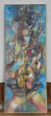 Celkové rozměry včetně rámu úctyhodných cca 195 cm x 75 cm. Akryl na plátně. Rám je dřevěný. Celkový stav - viz foto.