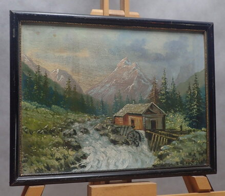Obraz - Mlýn pod horami. Signován a datován vpravo dole - viz foto.
