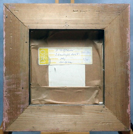 Rozměry včetně rámu cca 35 cm x 34 cm, rám je mohutný, zdobený, místy má otluky. Olej na kartonu či desce. Celkový stav - viz foto.