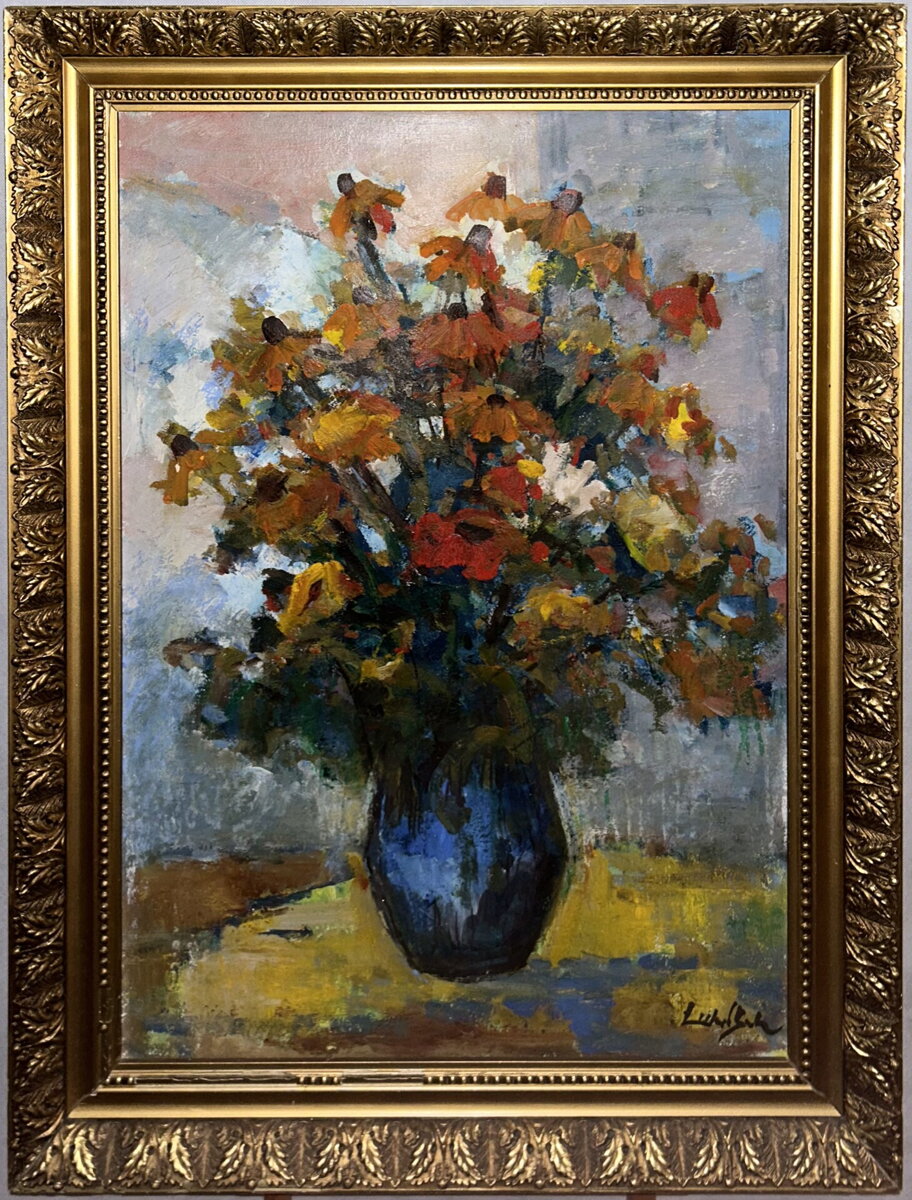 Obraz - Barevná kytice. Autorem je akademický malíř Alois Lukášek. Signován vpravo dole - viz foto. Obraz galerijní kvality. Zezadu obrazu je zničený autorský štítek s názvem díla, technikou - vše viz foto.