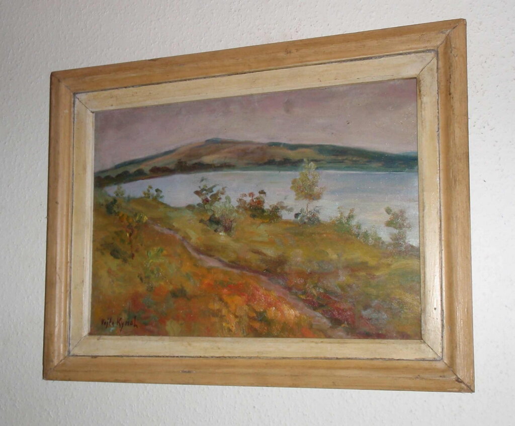 OBRAZ - PĚŠINA U VODY. AUTOREM JE KVALITNÍ, VYHLEDÁVANÝ AUKČNÍ MALÍŘ VOJTA KYNCL. SIGNOVÁN VLEVO DOLE - VIZ FOTO.