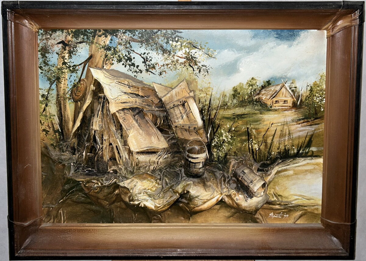 Obraz - Polorozpadlá malebná bouda - 3D obraz. Signován a datován vpravo dole - viz foto.