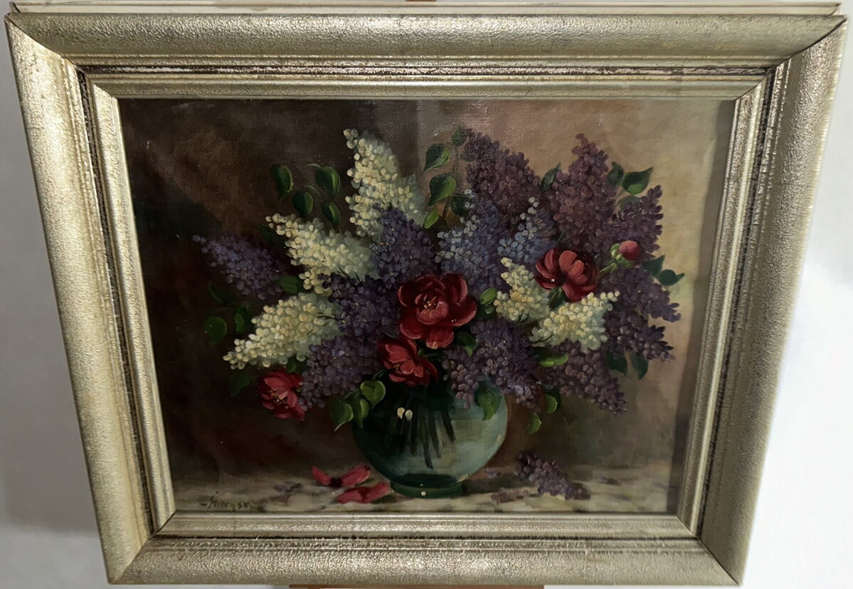 Obraz - Šeříky ve váze. Signován vlevo dole - viz foto. Autorem je malíř Evžen Nágl Štítenský.