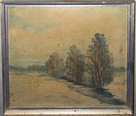 Obraz - Krajina se stromy. Signován vpravo dole - viz foto. Autorem je malíř Hájek (možná Franta Hájek).
