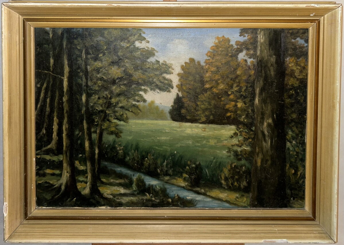 Obraz - Potok v lesní krajině. Signován a datován vpravo dole - viz foto.