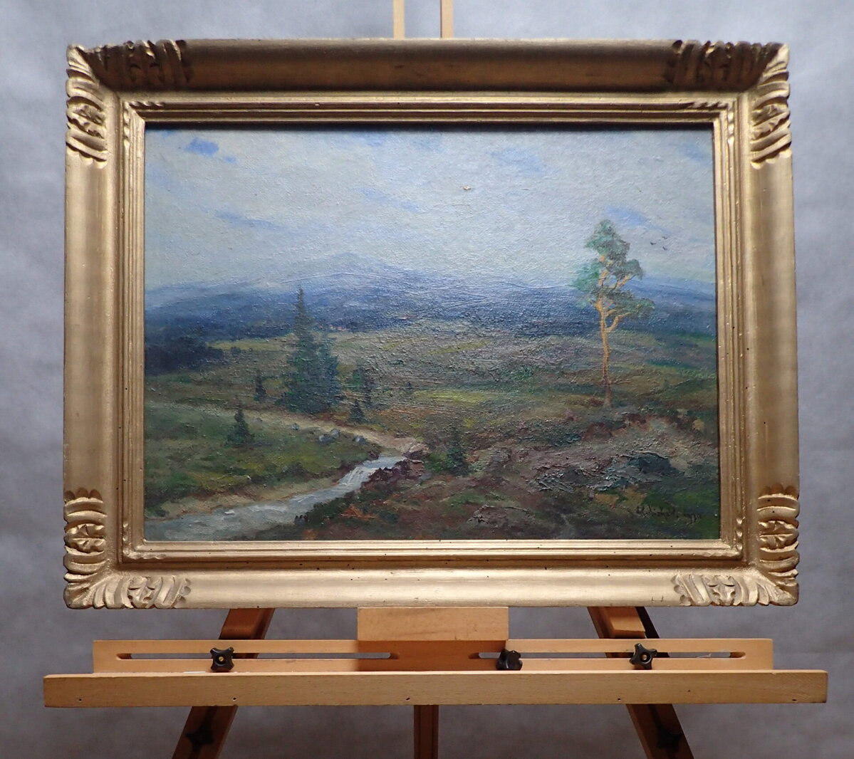 Rozměry včetně rámu cca 65 cm x 55 cm. Rám je bohatě zdobený, místy má otluky. Olej na malířské lepence. Obraz je zasklený. Celkový stav - viz foto.