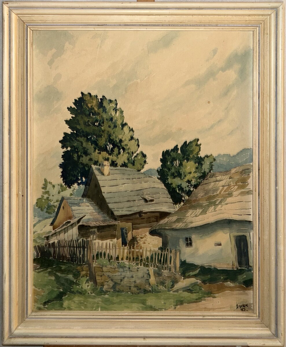 Obraz - Chalupy na venkově. Signován a datován vpravo dole - viz foto. Autorem je malíř Štark.