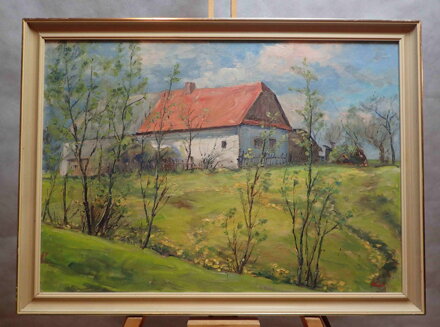 Obraz - Léto na vsi. Autorem je malíř Hrabal. Signován vpravo dole - viz foto. Obraz je úžasně namalovaný, doslova z něj čiší pohoda letních dní.