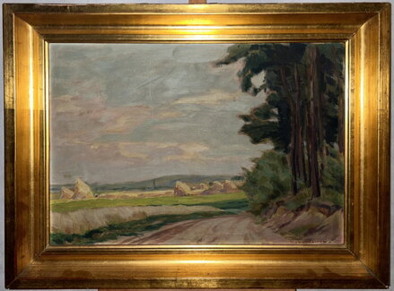 Obraz - Snopy u lesní cesty. Signován vpravo dole - viz foto. Autorem je malíř Rudolf Walter.