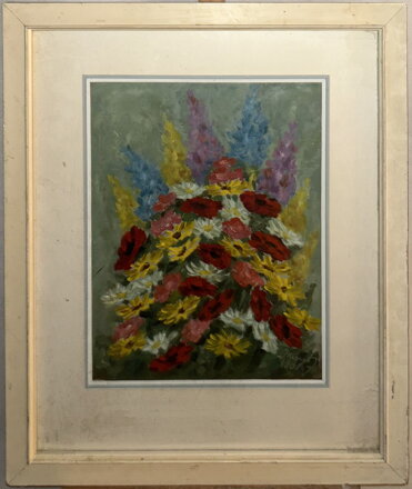 Obraz - Barevné kvítí. Signován a datován vpravo dole - viz foto.