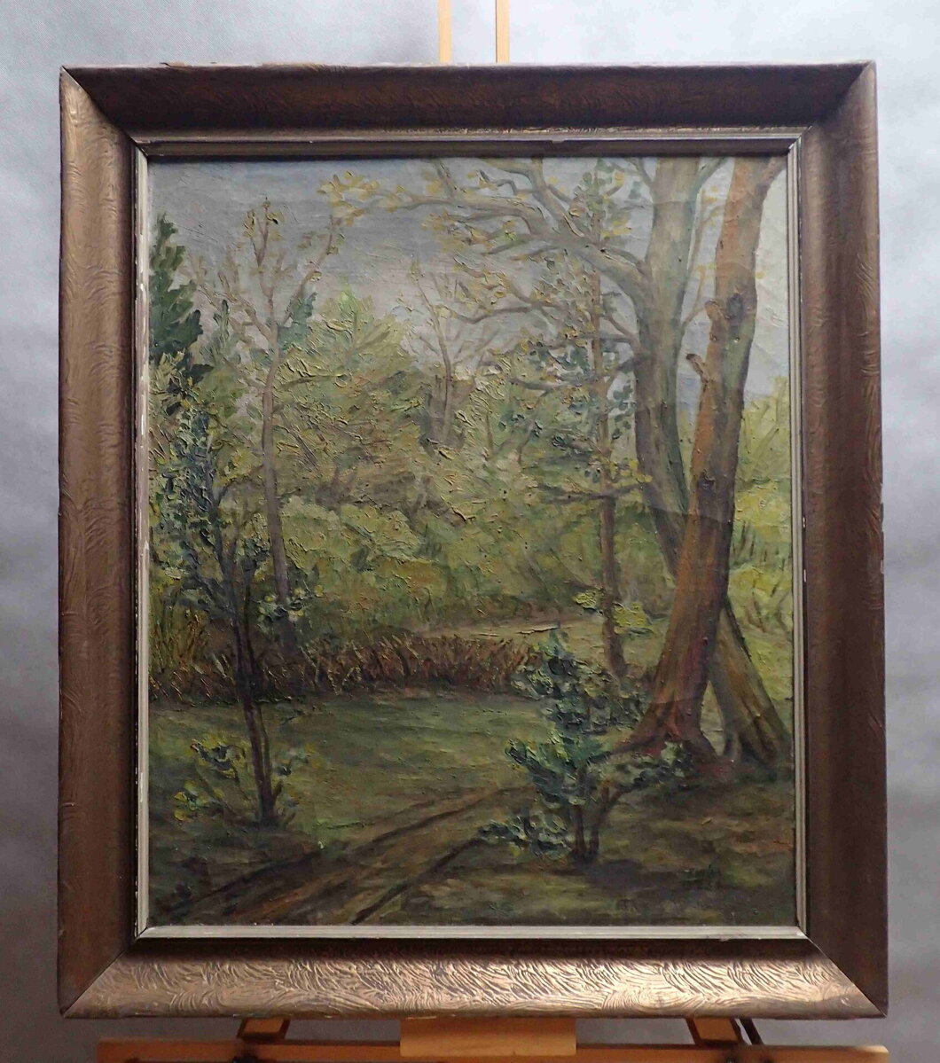 Obraz - Lesní cesta. Autorem je malíř Hlína. Signován a datován vpravo dole - viz foto.
