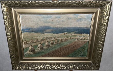 Obraz - Snopy v krajině. Signován vpravo dole - viz foto. Autorem je malíř Keller.