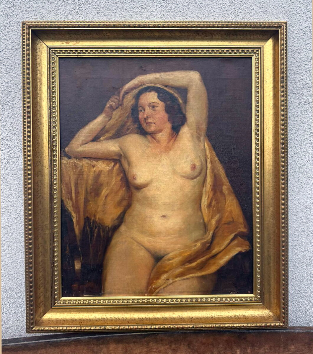 Obraz - Akt Paní Továrníkové. Autorem je akademický malíř Otakar Číla. Signován a datován vlevo nahoře - viz foto. Obraz galerijní kvality. Na první pohled je vidět, že Otakar Číla si dal na tomto obraze velmi záležet, jedná se o velmi kvalitní dílo. Provenience z pozůstalosti Zlín.