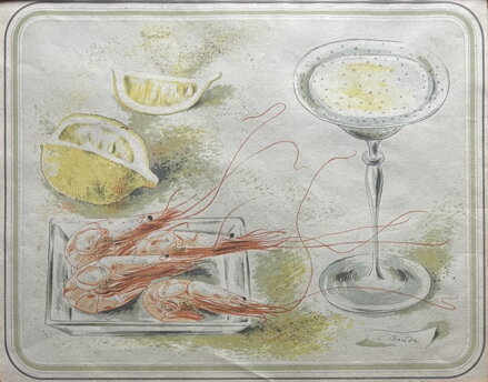 Obraz - Krevety s citronem - opus 847. Signován v tiskové ploše, ale i tužkou pod litografií - zčásti pod paspartou vpravo dole - viz foto. Autorem je akademický malíř a grafik Cyril Bouda. Sběrateli vyhledávaná litografie, stejná se prodala v galerii Platýz za obdobnou cenu. Zřejmě datován zezadu obrazu - viz foto.