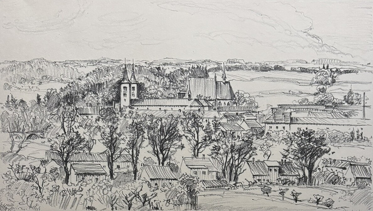Obraz - Pohled na Milevsko s klášterem. Signován Karel Stehlík "Milevský" vpravo dole - viz foto. Autorem je akademický malíř a národní umělec Karel Stehlík.